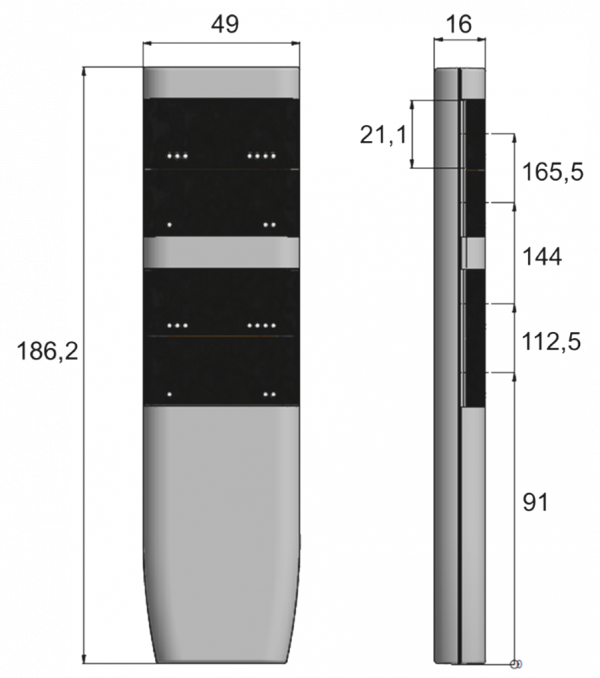 186,2 x 49 x 16 mm